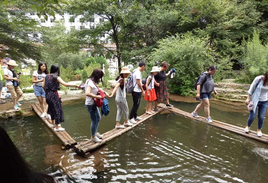 到達(dá)景區(qū)后,在導(dǎo)游的帶領(lǐng)下我們乘坐“小交通”一路上行,首先來(lái)到了綿山景點(diǎn)的第二站——云峰寺,之后去了水濤溝和一線天。在一線天陡峭的懸崖上有十余架天梯蜿蜒而上,而在我們的腳下是淙淙溪流。在這一路上,盛大美璃團(tuán)隊(duì)表現(xiàn)出了他們團(tuán)結(jié)互助的一面,主管白楊一路殿后生怕落下一個(gè)人,有些姑娘們不敢往前,大家就給以鼓勵(lì),予以幫助,在這尖叫連連聲中到達(dá)了一線天的頂峰。這是整個(gè)游覽中最驚險(xiǎn),最刺激的一個(gè)環(huán)節(jié),也是最考驗(yàn)人的一個(gè)環(huán)節(jié),雖然艱險(xiǎn),但是盛大鋼構(gòu)的每位成員都表現(xiàn)出了不怕困難、勇往直前的不服輸?shù)木瘛?/p>